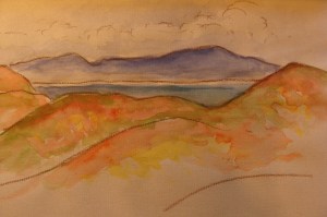 Reflecting on the walks, many images delight my mind — images conjured by the stories of Sandy and Gary, the two trip leaders: the realization that Monterey Bay is not a pristine environment, no location on the Bay has been spared the impact of humankind; the image of Chinese fishing sampans on the beach now known as New Brighton; the impact of earthquakes, erosion and tidal forces on the coastline; the story of Gaspar de Portola and his Spanish troops walking what would become the El Camino Reale as he searched in vain for Monterey Bay; developers’ insistence on building at the ocean’s edge, imperiously disregarding the cycle of el nino and la nina climate patterns on urban planning; the mother gray whale and her baby breaking the surface with their spouts; the enormous American bullfrog, an invasive species found on the shore of the Salinas River; the bachelor otter pod at Moss Landing; the snowy plovers guarding their nests and chicks on the beaches near to Monterey; and the clouds: light fogs at a far distance resting lightly on the water — quickly burning back leaving a brilliantly bright day where sunlight danced crisply on the waves, or the dramatic bands of clouds moving fast north to south, precursors of the front that would bring unseasonal rain from Santa Cruz to San Diego.